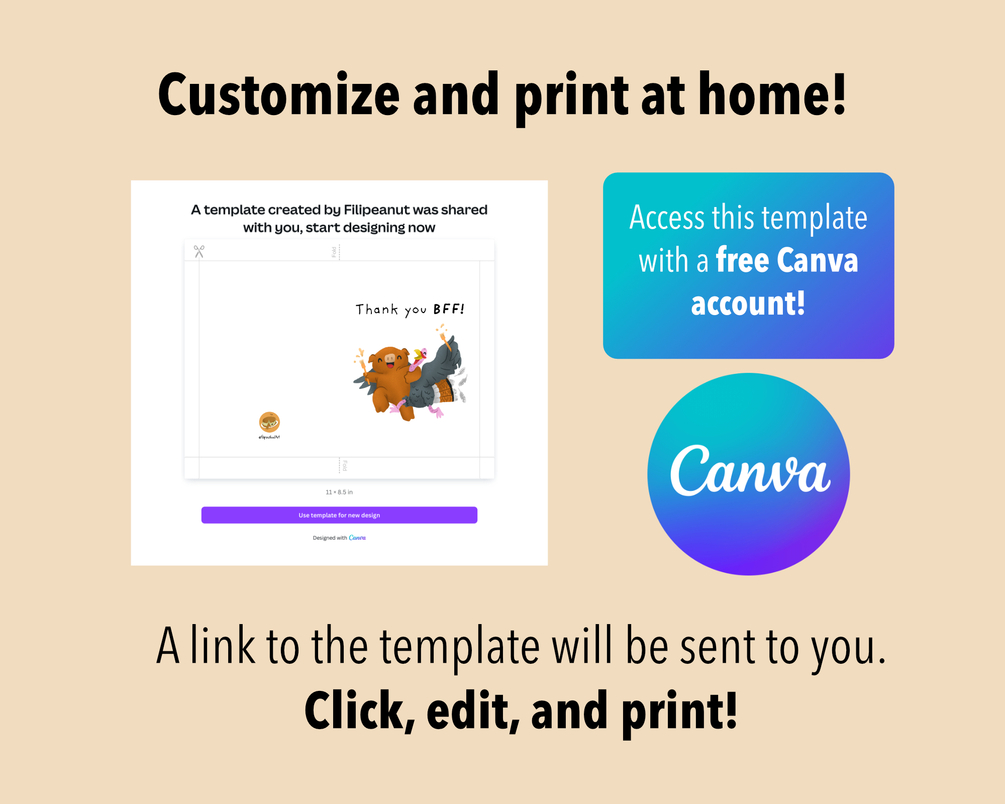 DOWNLOAD INCLUDES one PDF file with a link to your editable greeting card in Canva. The greeting card is a 5x7” template on US letter size paper (8.5x11).