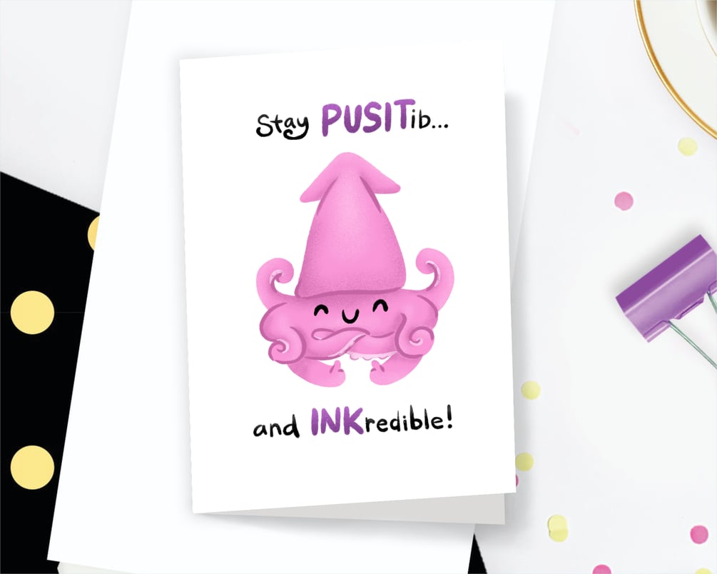 Stay PUSITib and INKredible Filipino pun Printable Greeting Card